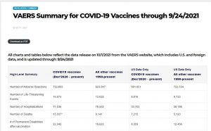 In a “VAERS Summary for COVID-19 Vaccines” report, which includes U.S. and foreign data, deaths by vaccine are updated all the way through the end of September, 2021. The number of life-threatening events caused by Covid vaccines has already passed the same data for all other vaccines since 1990. The number of hospitalizations from Covid vaccines has just about caught up to the same data reported for all vaccinations since 1990.