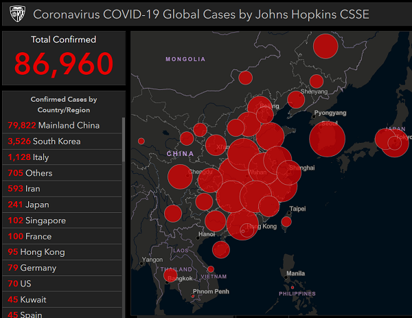 The coronavirus (covid-19) pandemic has now spread to 60 nations around the world and is exploding by the day, having killed the first U.S. patient earlier today in the State of Washington.