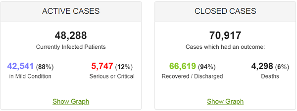 The global death rate for concluded cases has now reached 6%, with 94% surviving. This rate of 6% is triple what most pundits have been claiming (2%), and it’s 60 times higher than the death rate of the seasonal flu (0.1%).