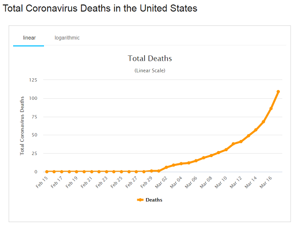 And here’s how the deaths are mounting up in the USA, already blowing past 100 deaths: