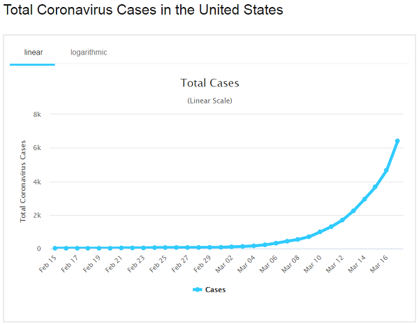 The coronavirus continues its rampage across America, with over 7,300 now confirmed infected (remember when it was just 15?) and 107 confirmed dead. With numerous cities now under lockdown conditions, substantial social distancing factors have been put in place which will significantly slow the spread of the virus over subsequent months, but the reality is that most of America acted too late and we’re going to see a surge of infections and deaths for the next 3-5 weeks, no matter what happens today.