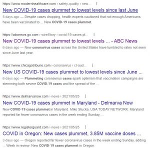 Now, of course, MSM (mainstream media) and the corrupt-to-the-core CDC, well they’re going to LIE as they always do and credit vaccines for the “plummeting” Covid-19 statistics, as you can find that word “plummet” conveniently spread across every fake news outlet in the country right now. It’s another ploy, a plot, a con, a trick to get as many people inoculated with the kill switch mRNA jabs. Plummet. Plummet. Plummet. Blah, blah, blah.