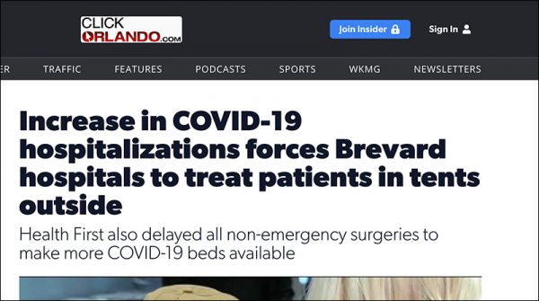 Responding to another article about hospitals in Brevard County, Florida, having so many patients they had to activate a tent ward, the journalist pushed back with her own photographic evidence.