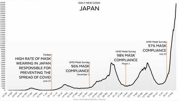 Japan was the media darling due to their mask usage, their “mask culture,” their willingness to comply — and it’s all come crashing down.