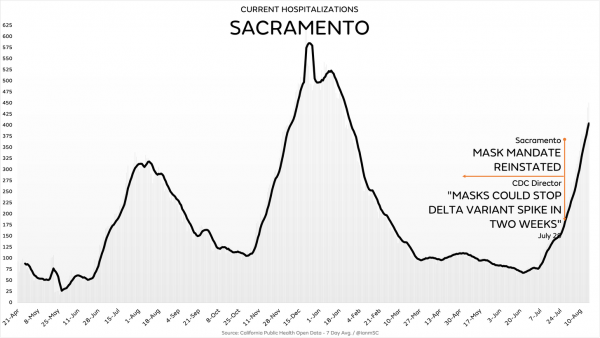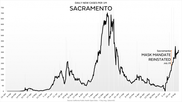 But, not to be outdone, the state capital in Sacramento mandated masks in late July as well: