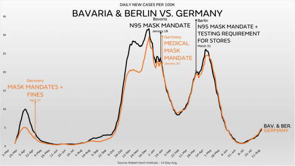 Despite the aggressive push for N95 masks by some experts, German states with N95 mandates have fared no better than those without a requirement for the supposedly more effective masks: