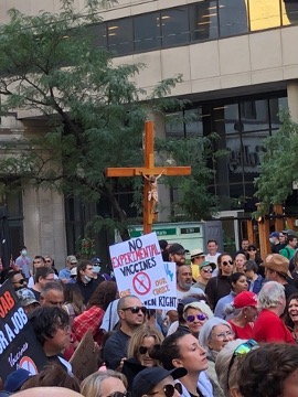 In a display of faith, one of the rally members held a 5-6-foot-tall crucifix above the crowd, and many others displayed similarly sized crosses as icons of faith and hope for all those in attendance.