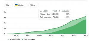 Yet somehow all the “vaccine” propaganda is still effective with the masses. Ukraine is still on an “adaptive lockdown” until at least October 1. Regional authorities have the power to tighten or loosen mask mandates, social distancing and other COVID measures based on the local situation. But gyms, movie theaters and large gatherings are essentially shut down across the country. Government employees and teachers face injection mandates in the coming weeks.