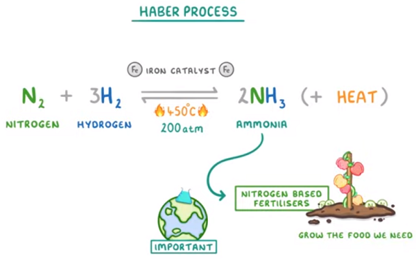 Much of the production of fertilizer in the world centers around this chemical process known as the “Haber Process,” created in 1908, which is arguably the single most important chemical reaction to sustain humanity at current population levels: