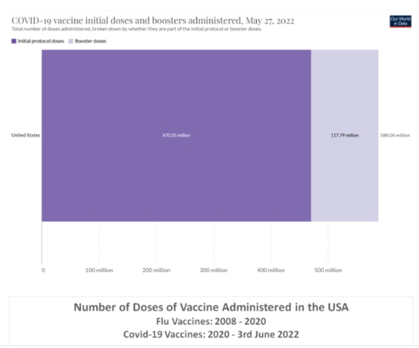 Some may try to argue that this increase is only because there were so many COVID-19 vaccines administered for more than a year. But that’s incorrect because official CDC data shows that nearly three times as many flu shots were given between 2008 and 2020 than COVID-19 jabs administered as of June 3. According to the CDC, some 1.7 billion flu shots were given between that time frame.