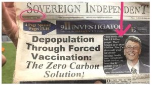 Oh yes he did. He said it and he meant it. He planned it. He funded it. He made sure it was carried out. It was called the COVID-19 plandemic. Bill “Depop” Gates is behind the whole thing, and an Irish Newspaper, The Sovereign Independent, even published this cryptic warning to the world way back in 2011 in a front-page news article entitled “Depopulation Through Forced Vaccination – The ZERO CARBON Solution.”
